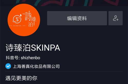 1、关注诗臻泊官方抖音账号“诗臻泊SKINPA”。