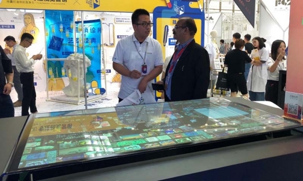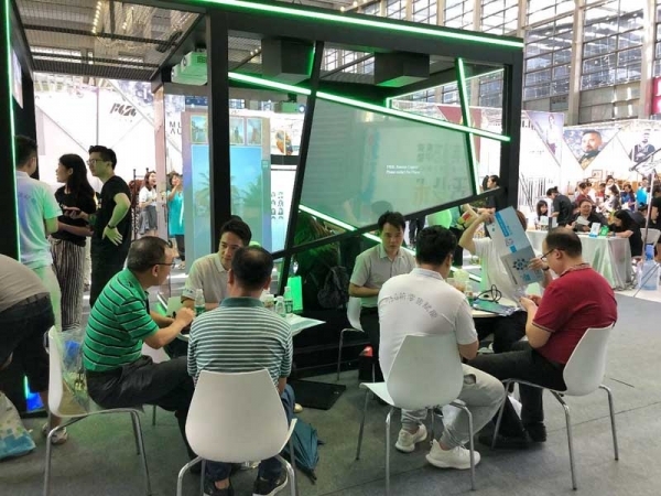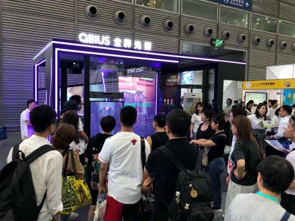 在2C66 QBIUS全屏光媒的展位,小编就看到了传说中的光!子!屏!这是一种具有一屏双显、0.2毫米超薄、低耗环保、随意柔曲、任意形状、无限尺寸……的显示屏。总而言之就是很!厉!害!QBIUS全屏光媒将光子屏的应用场景整合到一个3*5米的小空间里,不仅有高科技的硬件硬件,还有新零售交互系统,带来前所未有的体验。