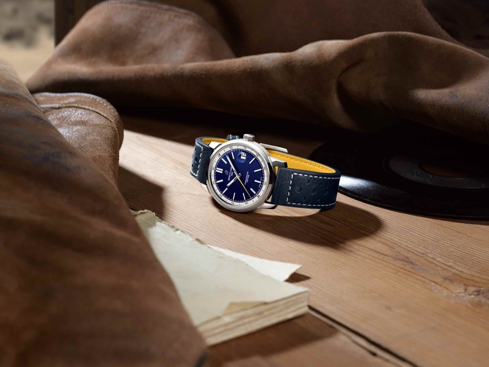 在卓越性能的支撑下,全新腕表延续了该系列的经典设计,同时在细节处融入独具匠心的色彩搭配,实现“焕新皮肤”。表款采用当下再度风靡的38毫米尺寸,完美复刻复古韵味,并适配不同手腕与性别。深邃蓝色表盘呈现细腻拉丝纹理,增添层次感;醒目的黄色秒针与外缘5分钟间隔的黄色点状时标相呼应,3点位置设有泡泡镜日历窗——这些设计在确保读时清晰直观的同时,也成为盘面上的点睛之笔,于复古基调中透出摩登活力。值得一提的是,此种黄蓝配色正是百年灵的品牌标志色。