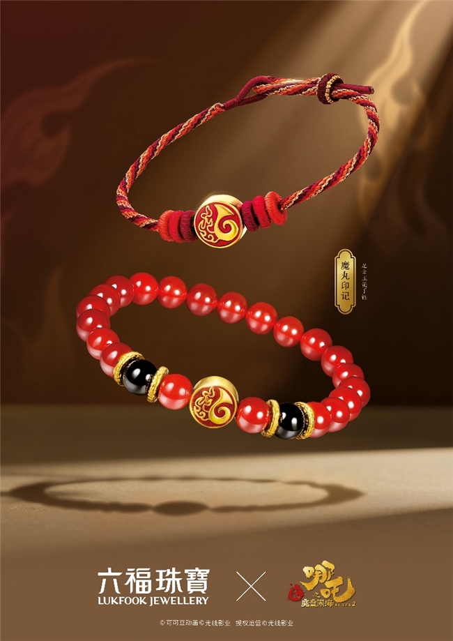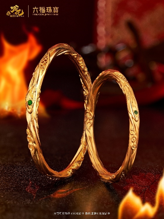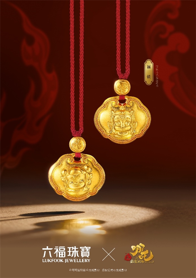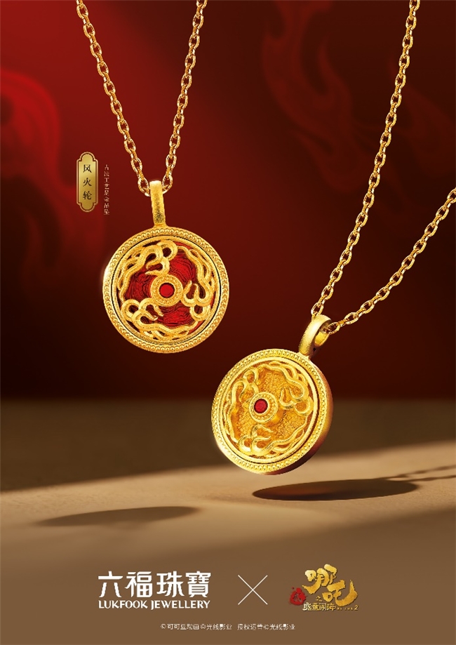 继2020年国民珠宝品牌六福珠宝与现象级影视IP电影「哪吒之魔童降世」成功合作,时隔五年两者再度携手,重磅推出火爆全球的国漫电影「哪吒之魔童闹海」系列产品,续写“金”彩华章。此次再度与国民IP「哪吒」的强强联合,不仅是六福珠宝深耕中国传统文化和品牌年轻化的又一次重磅出击,也是情感价值与精神内核的契合与创新,为珠宝设计提供无限灵感。电影「哪吒之魔童闹海」系列延续影片中的经典元素,将具代表性的乾坤圈、风火轮、混元珠等,采用传统古法制金工艺与硬足金鎏彩技术,匠心打造成多款璀璨生辉、福寓满满的足金首饰,“破次元”的巧妙融合,为矜贵的金饰情感赋能,惟愿每一位佩戴者都有重塑自我、直面挑战的勇气和力量,成为更好的自己。