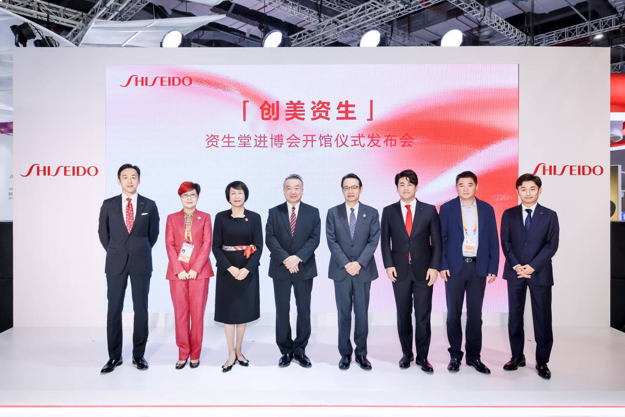 日本国驻华大使金杉宪治、日本国驻上海总领事·大使冈田胜、中国香精香料化妆品工业协会理事长颜江瑛、上海九院整复外科主任章一新,以及资生堂中国管理层共同为“创美资生”展台开幕剪彩