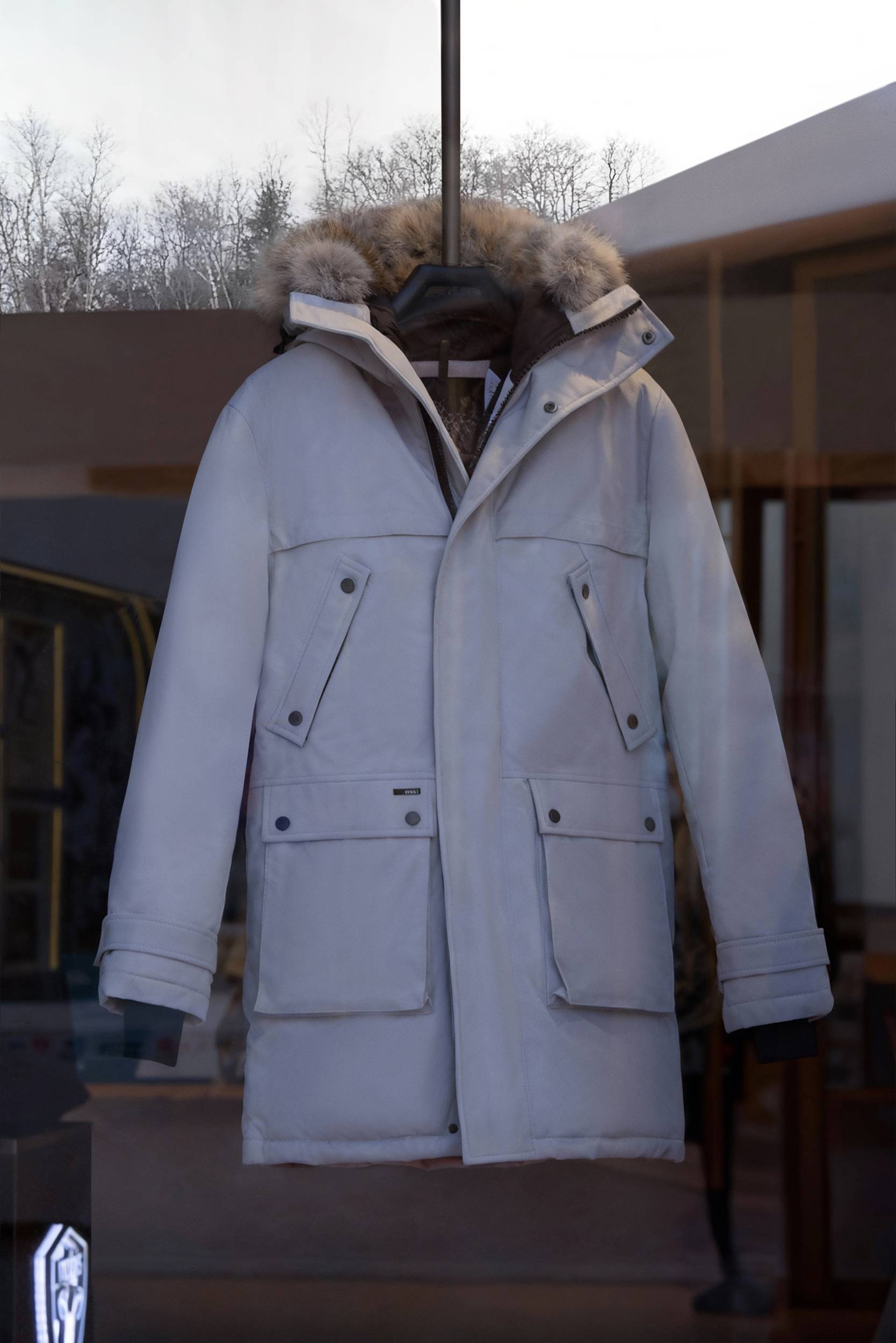崇礼云顶得天独厚的雪场环境与国际赛事背景,为加拿大极寒文化的呈现提供了理想场域。品牌一直以极地防护技术打造功能性御寒单品,例如品牌的经典极地派克羽绒YATESY - 它将 Crosshatch™ 人字纹结构与 SympaTex® 防水透气科技相结合,叠加全防水压胶工艺,打造 -30°C 的御寒能力,将“城野穿行”的设计理念具象呈现。从材料选择到收纳细节的设计巧思均满足日常与户外的双重场景需求,使穿着体验从城市通勤延伸至极境探索。